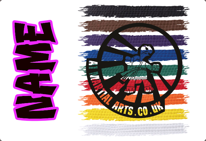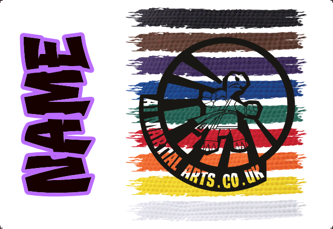 A1 Martial Arts Belt Design Aluminum Water Bottle. You have the option to have, blue, green, pink or purple around your name. Please select when ordering.