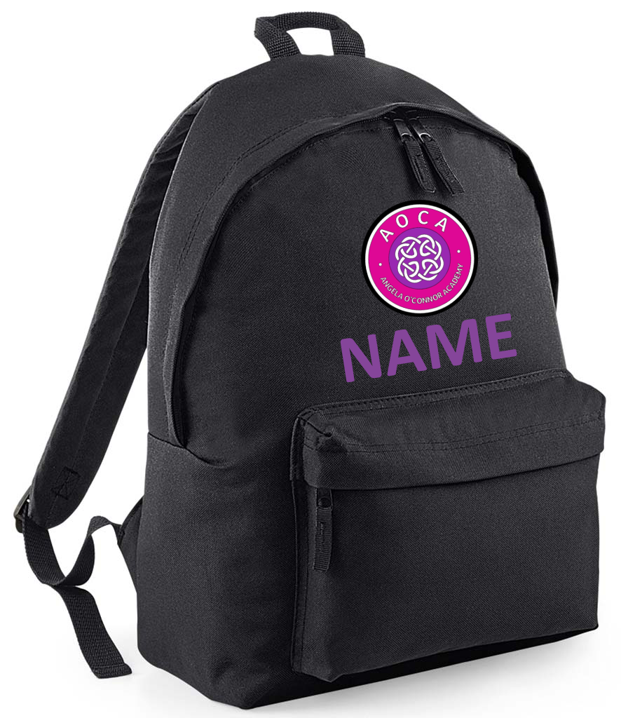 AOCA Black Rucksack with Fuchsia or Grey Logo.