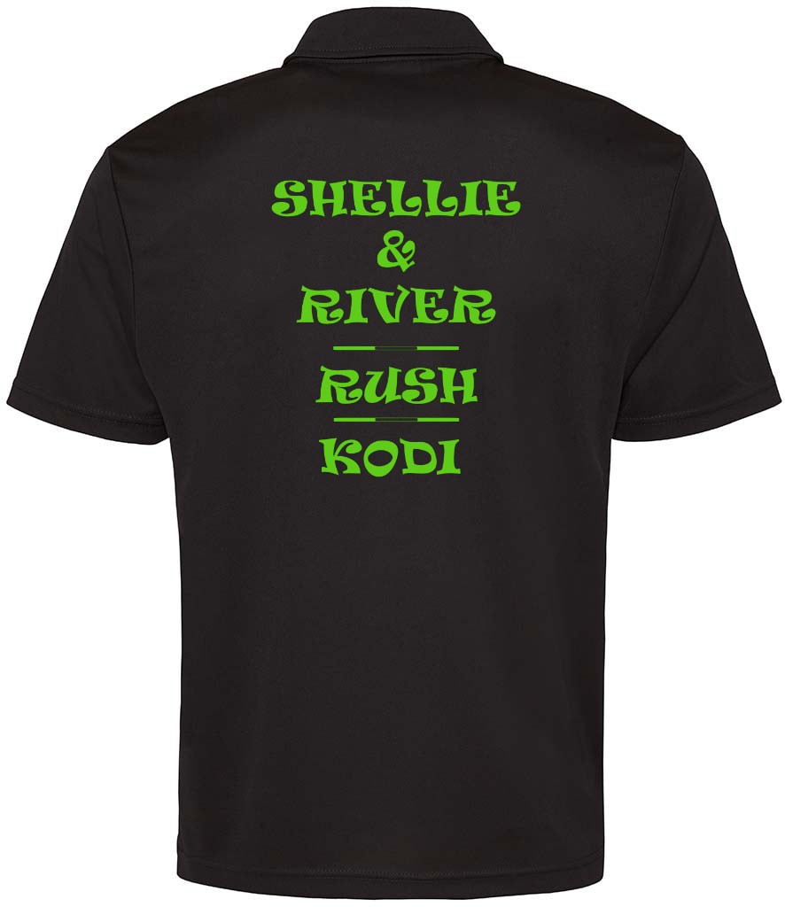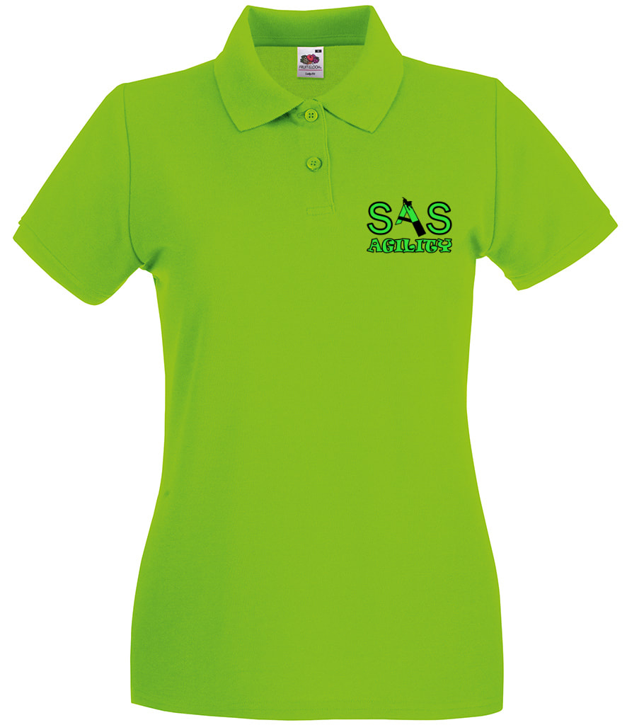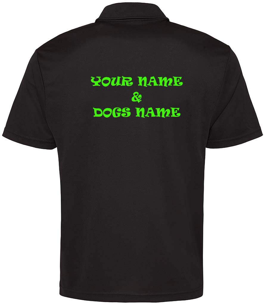 SAS Agility Kids Polo Top in Black or Green. You have the option of adding your name and that of your dog(s) on the back.