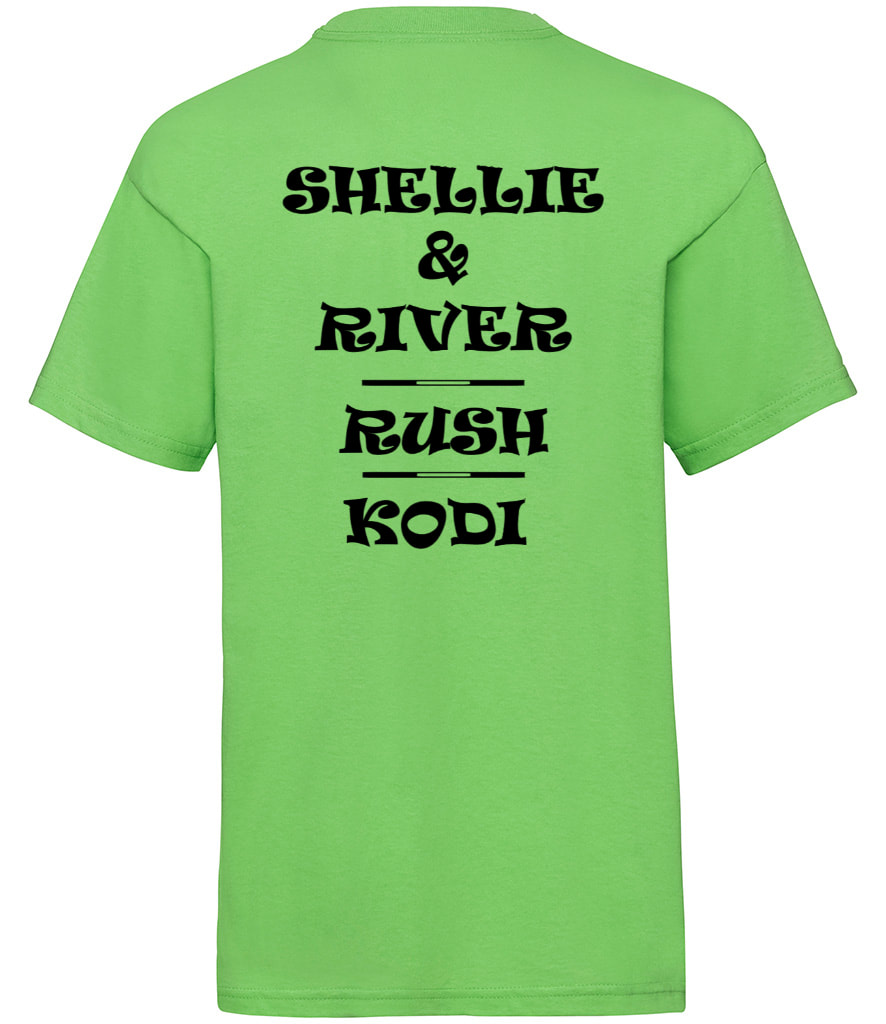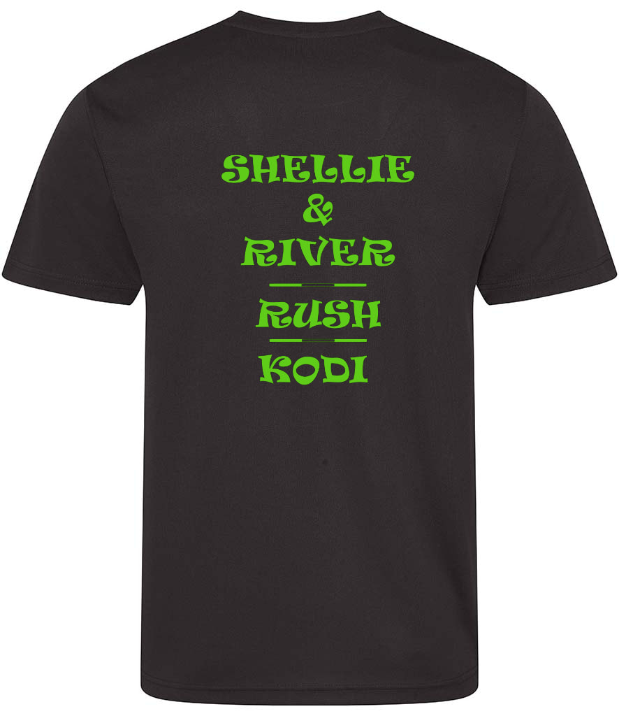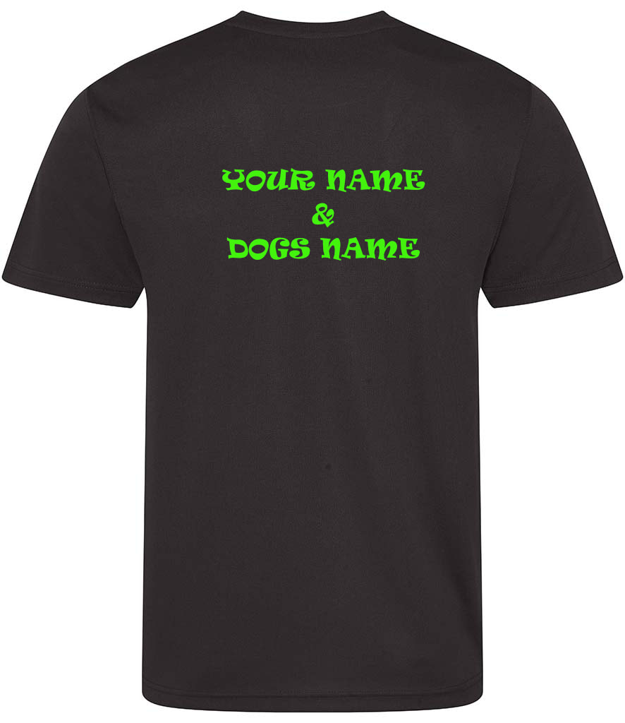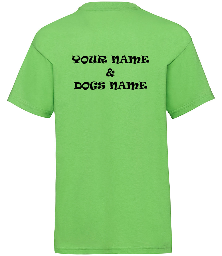 SAS Agility Kids Short Sleeved T-Shirt in Black or Lime. You have the option of adding your name and that of your dog(s) on the back.
