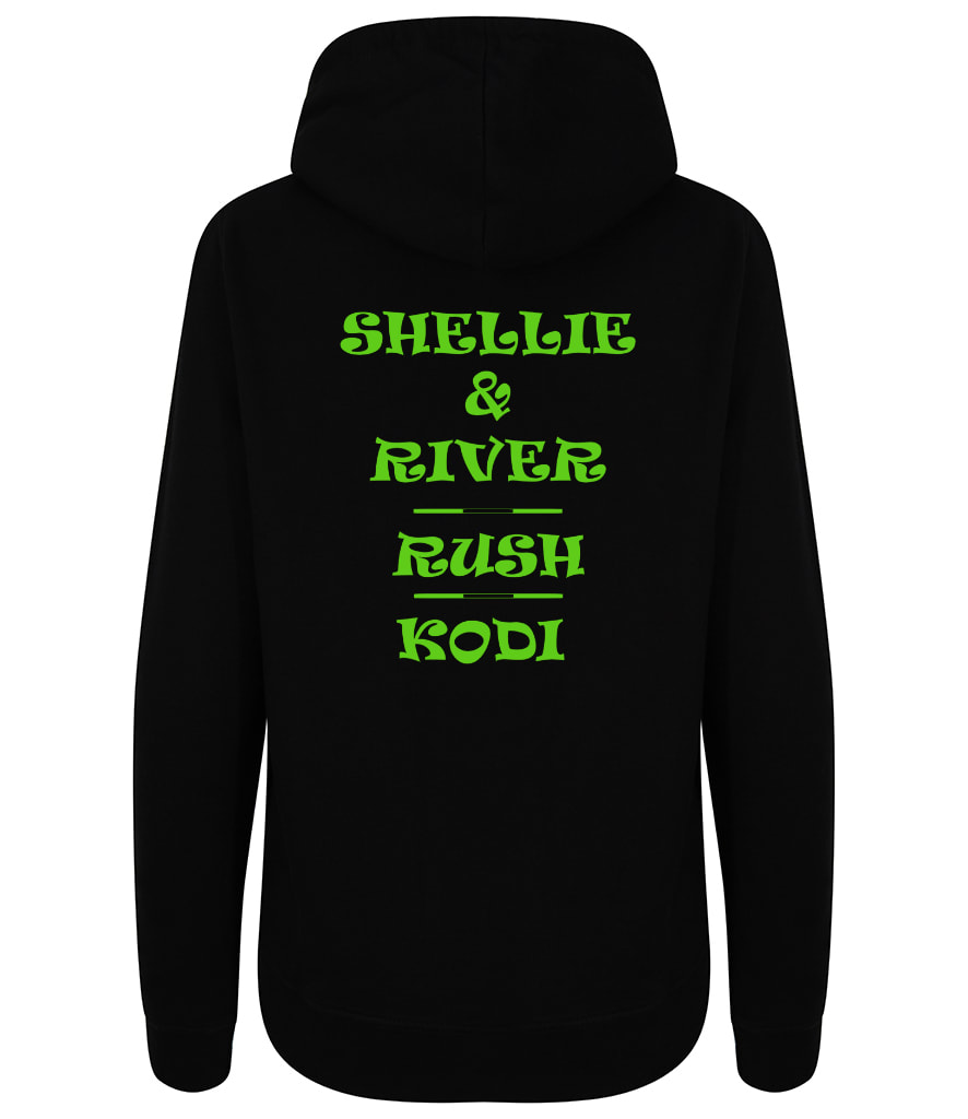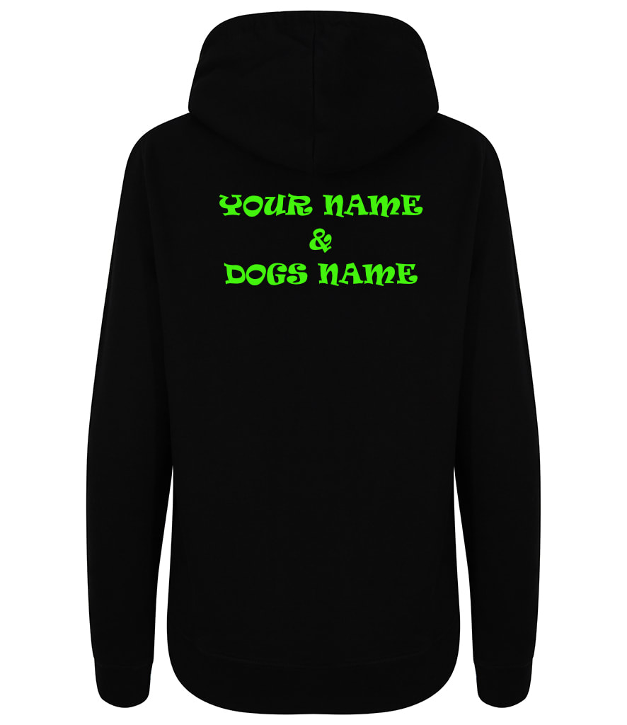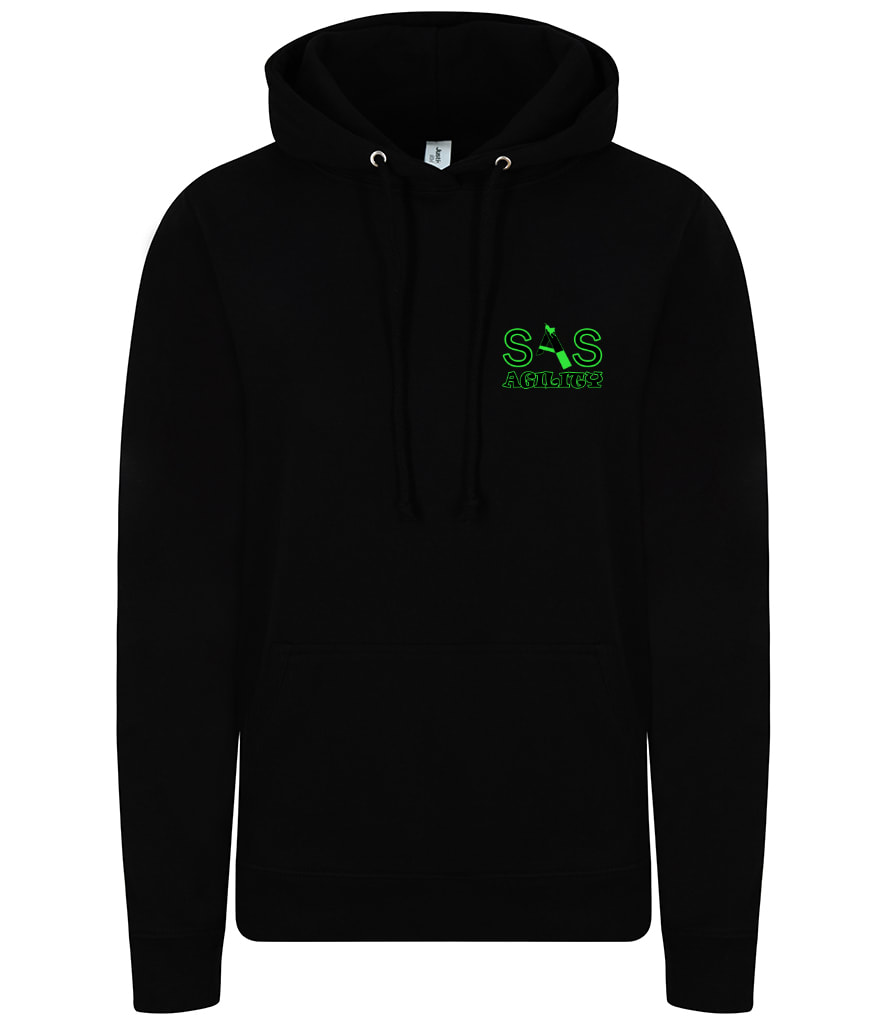 SAS Agility Ladies hoodie in Black. You have the option of adding your name and that of your dog(s) on the back.