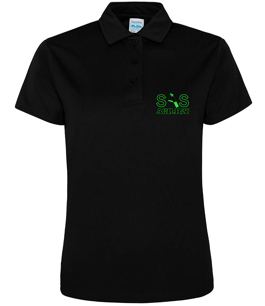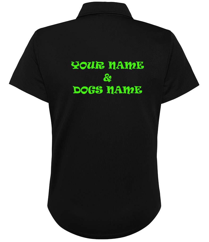 SAS Agility Ladies Polo Top in Black. You have the option of adding your name and that of your dog(s) on the back.