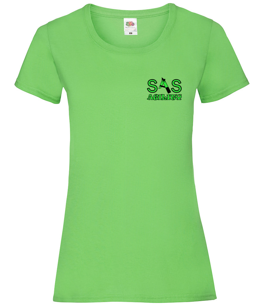 SAS Agility Ladies Short Sleeved T-Shirt in Green or Black. You have the option of adding your name and that of your dog(s) on the back.