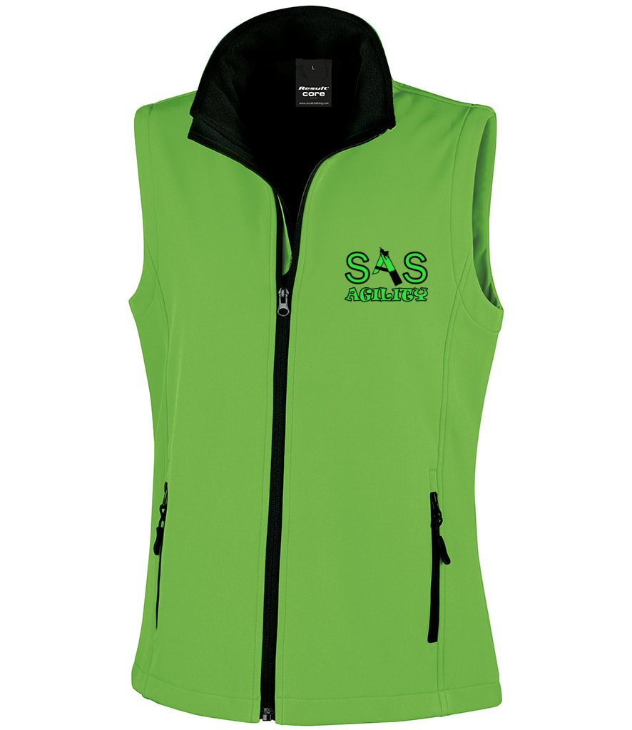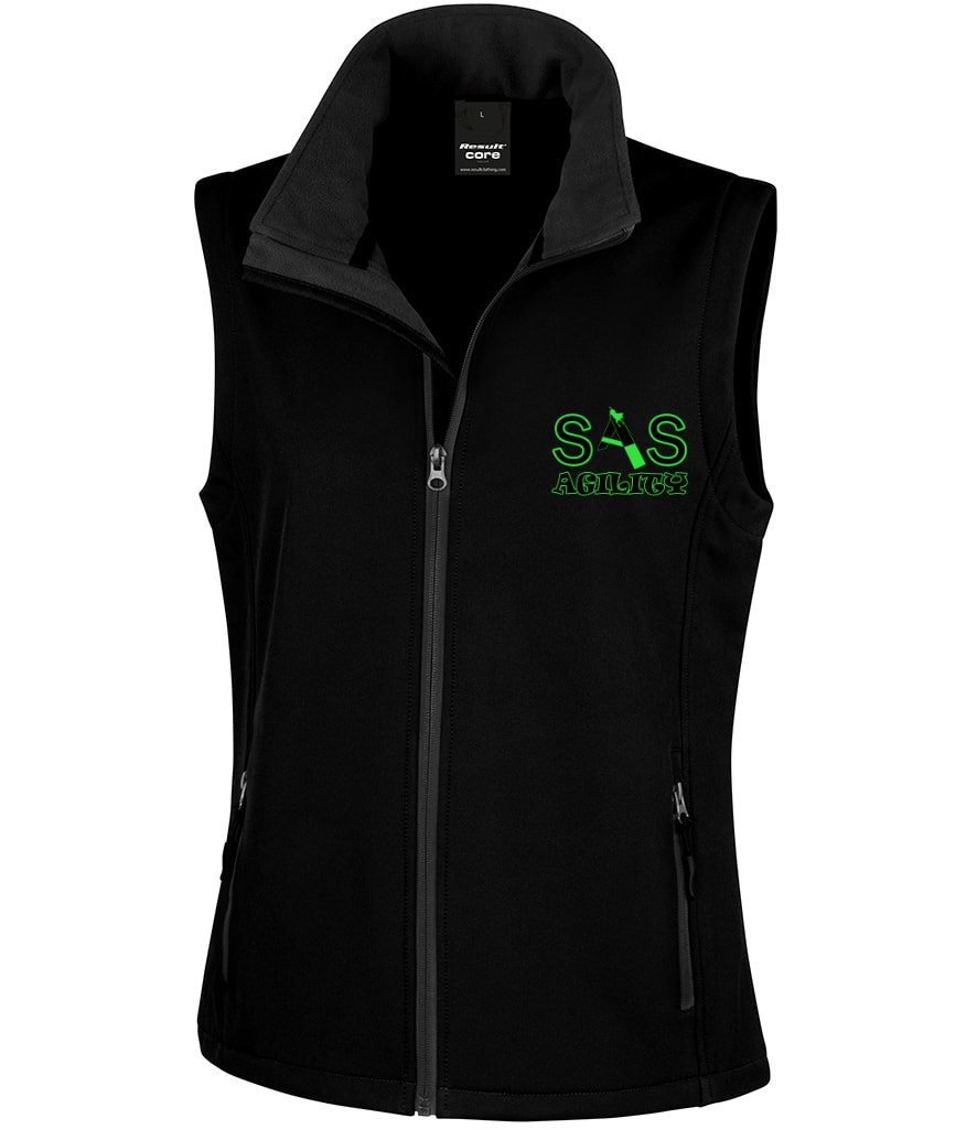SAS Agility Ladies Soft Shell Gilet in Black or Green. You have the option of adding your name and that of your dog(s) on the back.