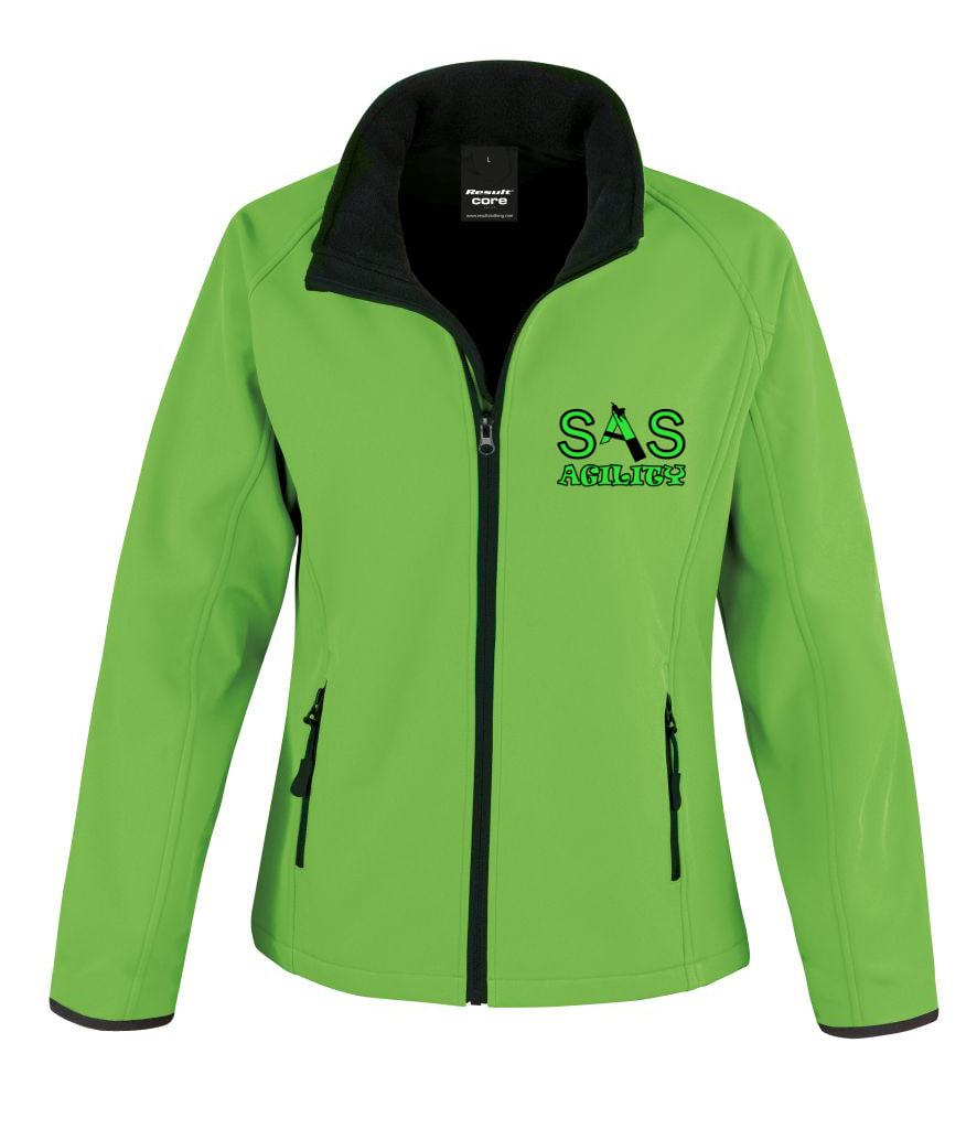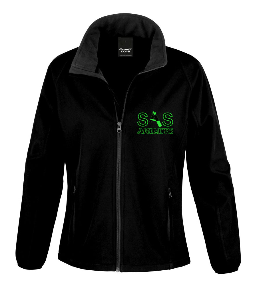 SAS Agility Ladies Soft Shell Jacket in Black. You have the option of adding your name and that of your dog(s) on the back.