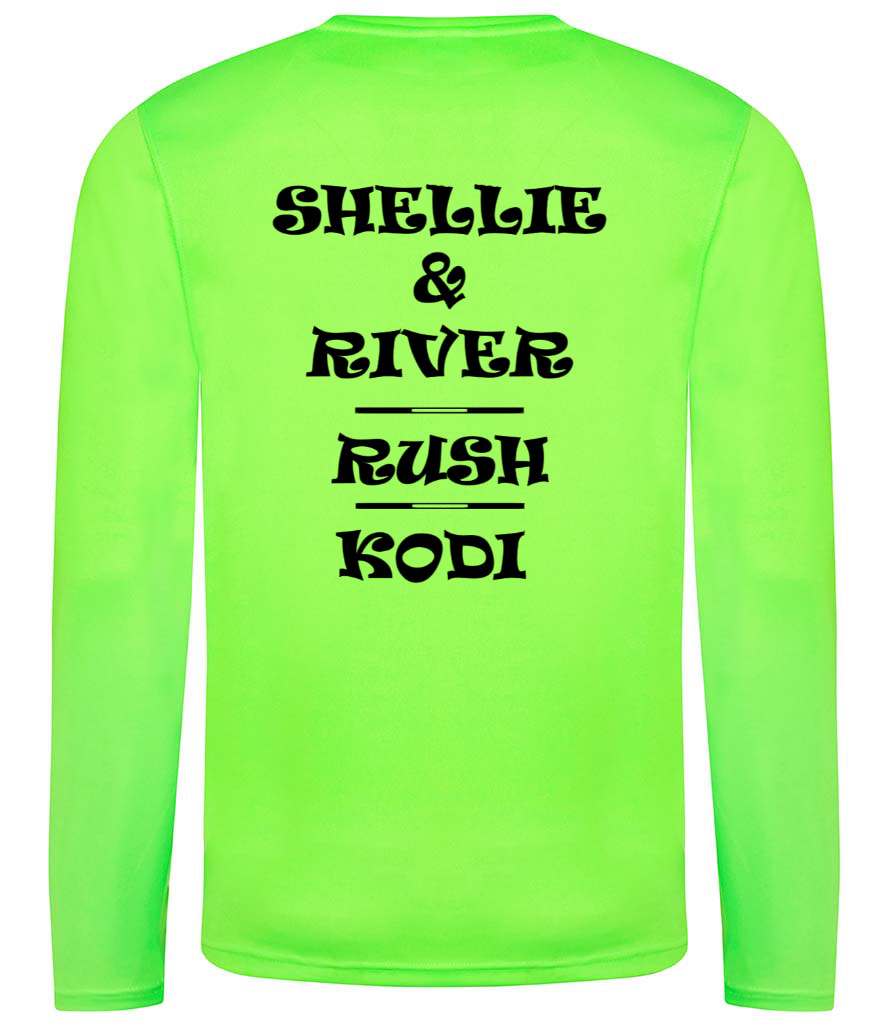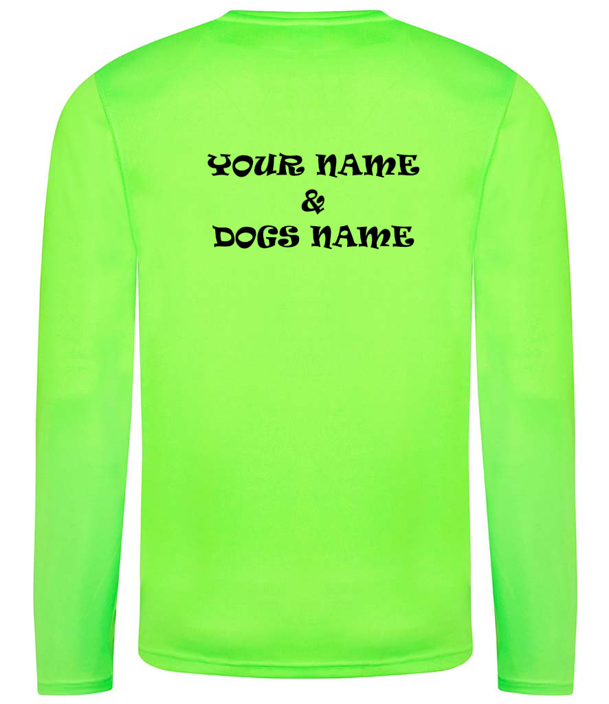 SAS Agility Long Sleeved T-Shirt in Black or Green. You have the option of adding your name and that of your dog(s) on the back.