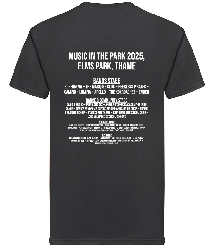 Show your support for this year’s Music in the Park with the official 2025 unisex t-shirt!