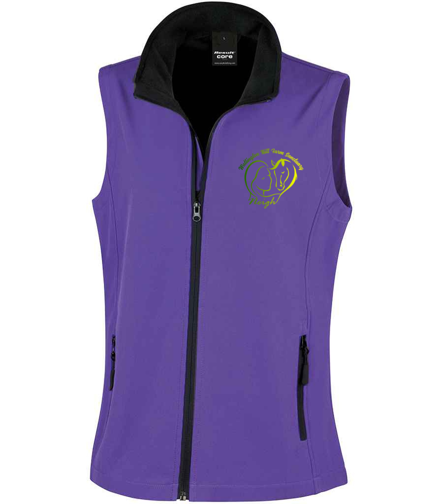 Neigh branded Ladies Soft Shell Bodywarmer available in Black or Purple
