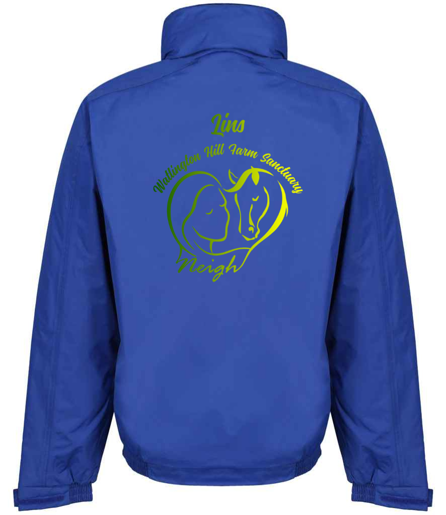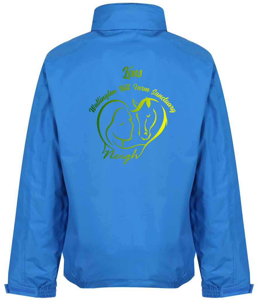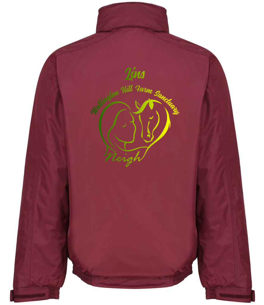 Neigh branded waterproof insulated jacket available in Black with Black Trim, Black with Red Trim, Oxford Blue, Navy, New Royal Blue, Royal Blue with Navy Trim, Green, Seal Grey, Red or Burgundy.