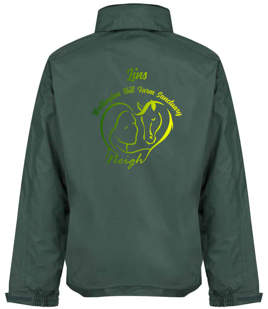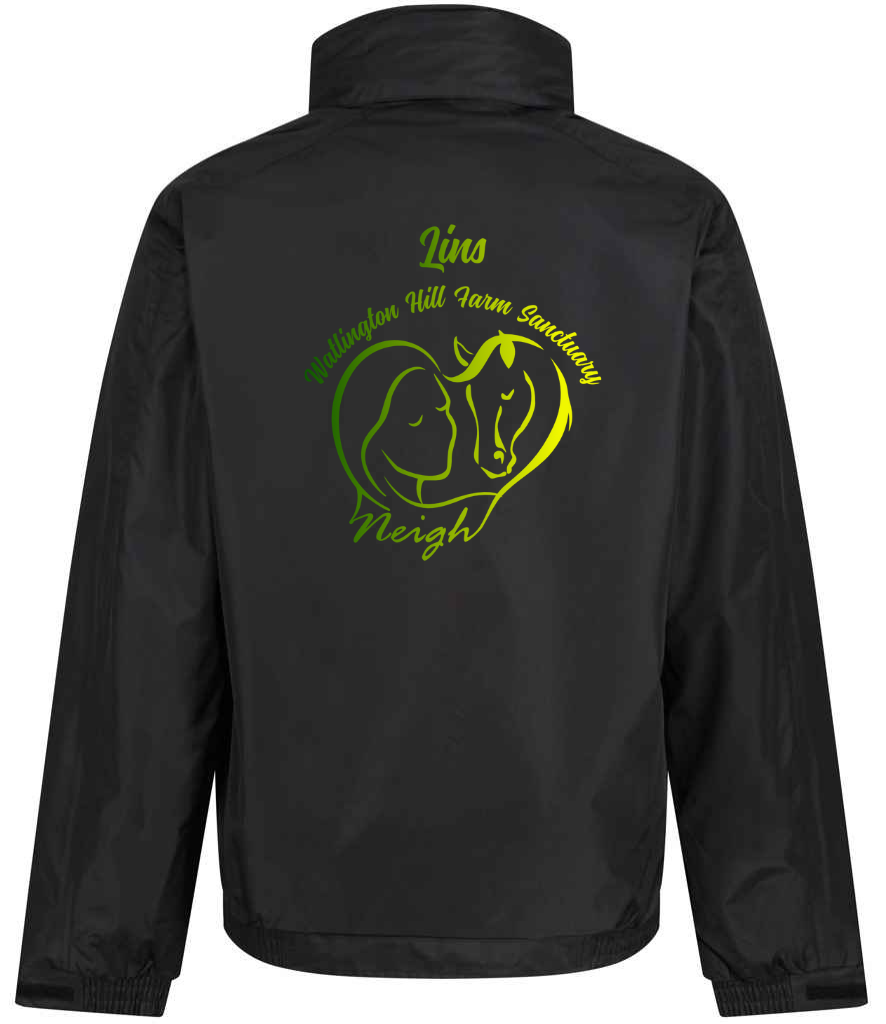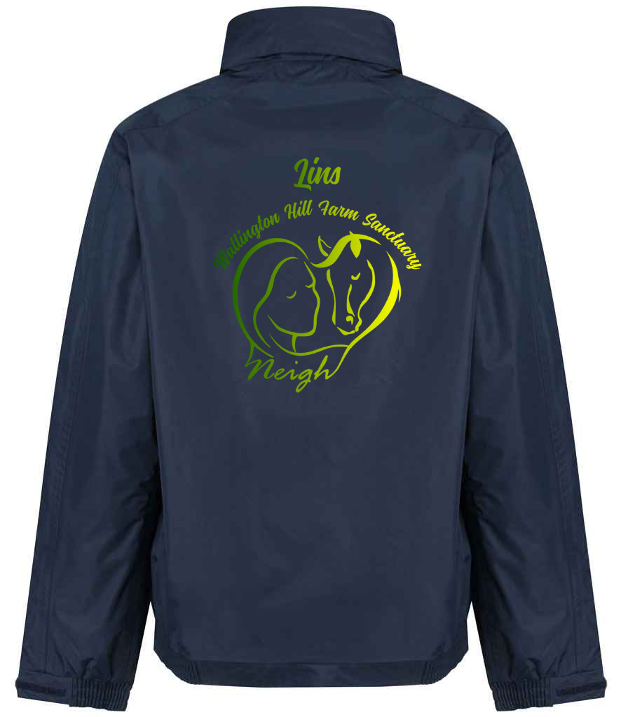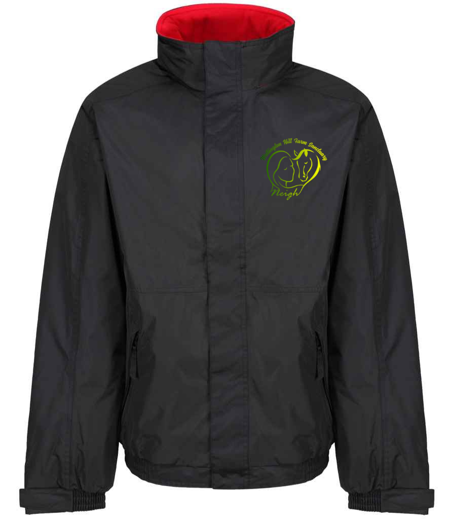 Neigh branded waterproof insulated jacket available in Black with Black Trim, Black with Red Trim, Oxford Blue, Navy, New Royal Blue, Royal Blue with Navy Trim, Green, Seal Grey, Red or Burgundy.