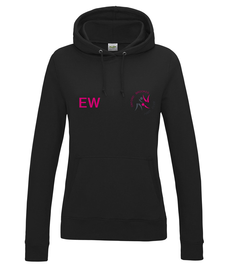 Oxford Brookes Judo Club ladies hoodie in black. You have the option of adding your initials to the front right pocket.