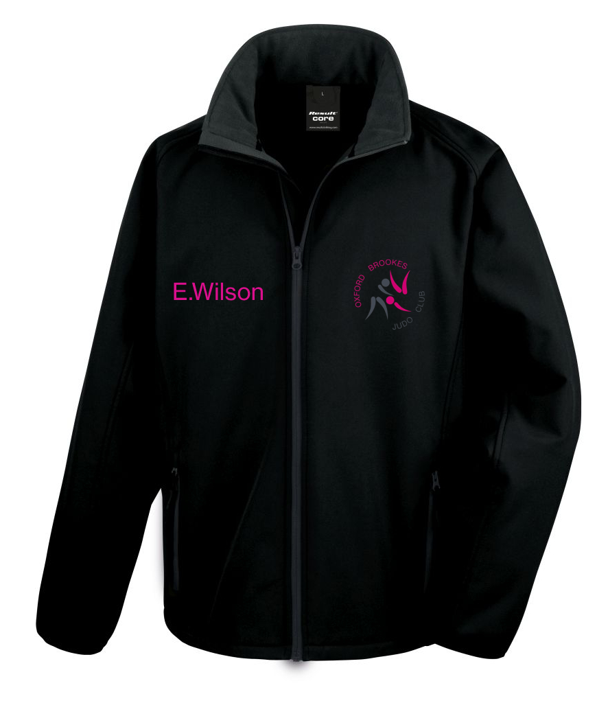 Oxford Brookes Judo Club ladies softshell jacket in black. You have the option of adding your initials or first initial and surname to the front right chest.