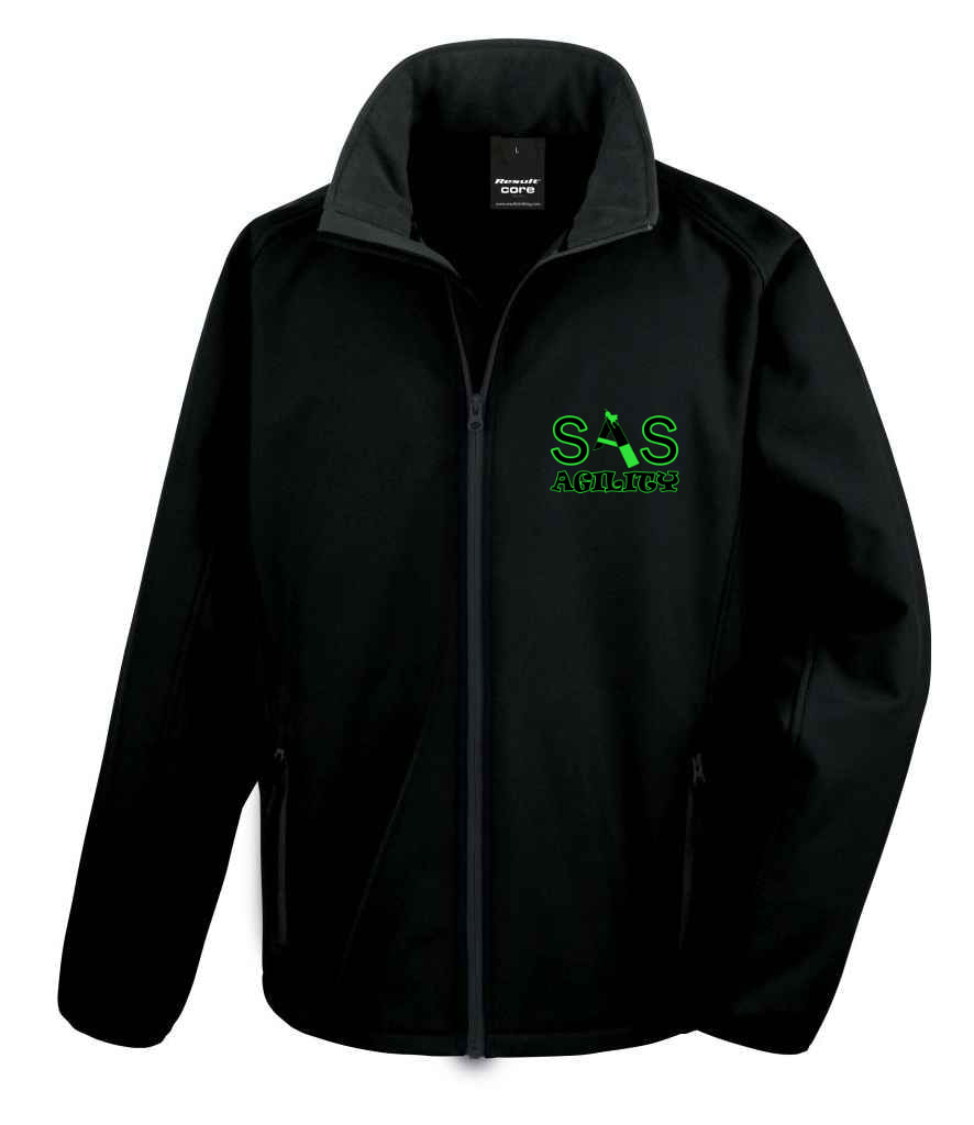 SAS Agility Soft Shell Jacket in Green or Black. You have the option of adding your name and that of your dog(s) on the back.