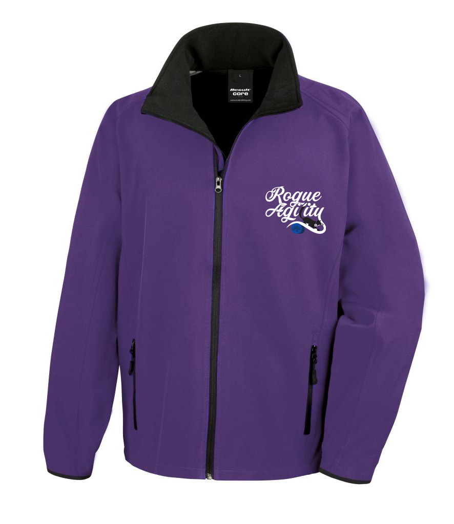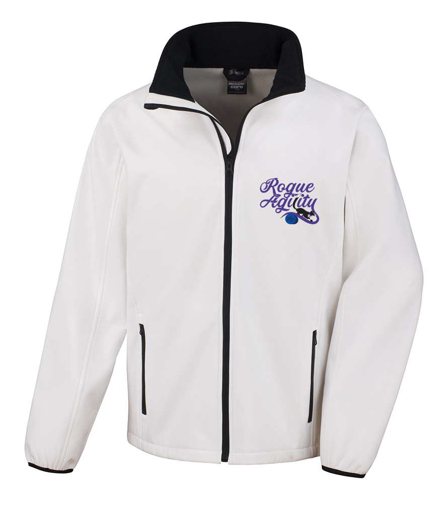 Rogue Agility soft shell jacket in White, Black, Grey, or Purple.